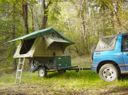 Unsatisfied with his desire to find a small RV that could be towed by a small car while still being comfortable in it, Scott found roof top tents, typical of the kind found on vehicles on a safari.